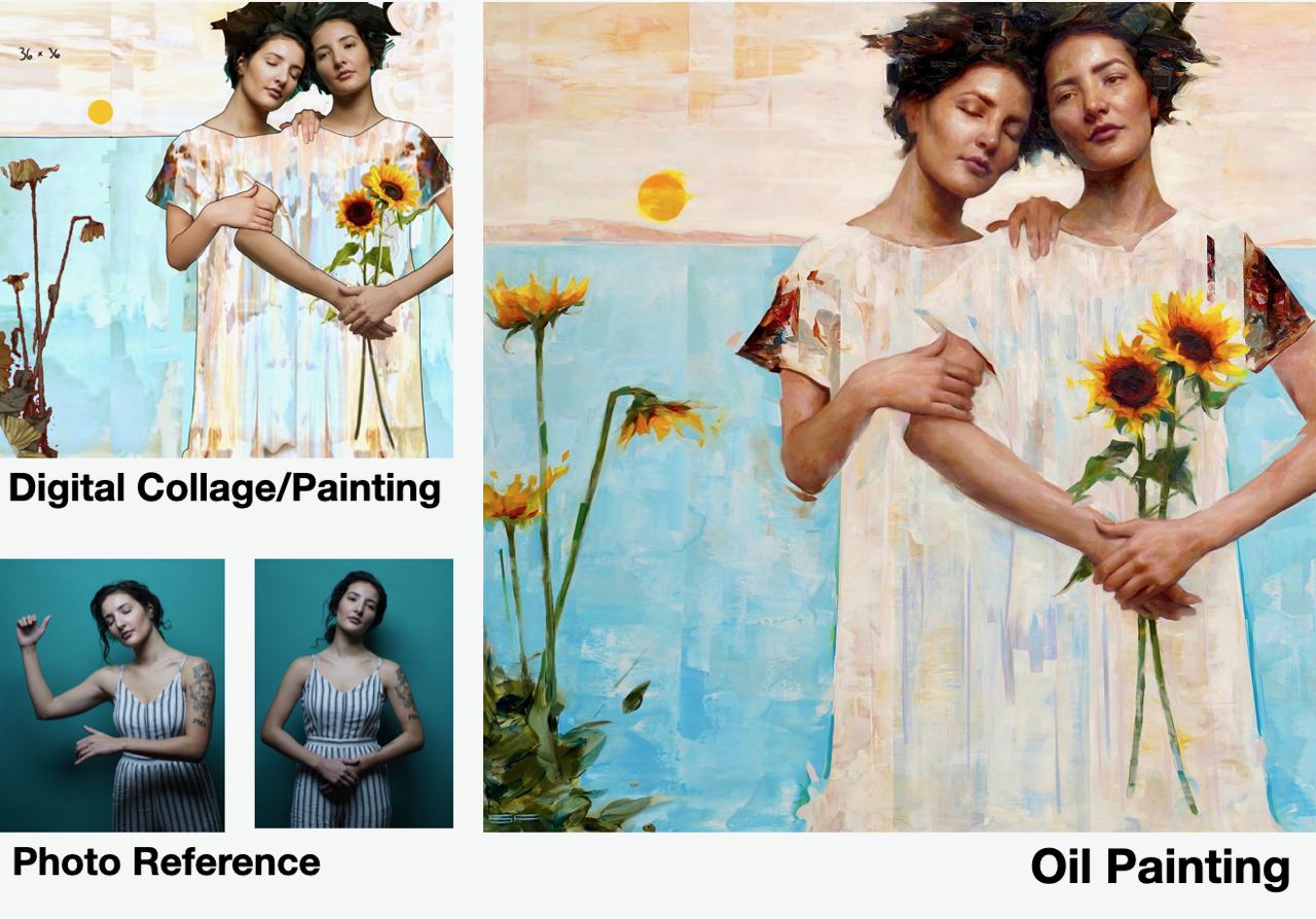 Throughout the course, each student will work on a larger, ambitious painting that centers on a portrait story. You'll choose from several compositional frameworks— and pick the one that suits your taste, as well as vote on the one that we all paint from. The painting will be done with an all prima technique that focuses on Sargent’s way of blocking in the portrait and then deal with each separate section as an exploration into different parts that make the story.